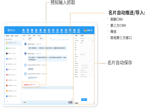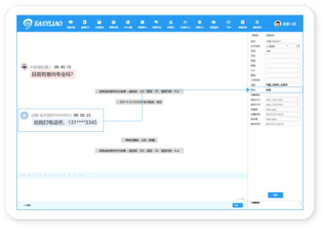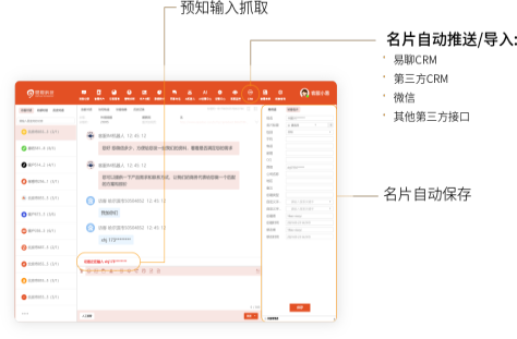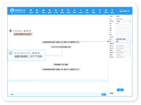 自動(dòng)識(shí)別客戶手機(jī)號(hào)、座機(jī)號(hào)、 微信、QQ號(hào)等聯(lián)系方式,還 可自定義信息字段,實(shí)現(xiàn)AI自 動(dòng)抓取保存;