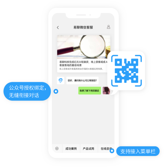 支持二維碼掃碼進(jìn)入對(duì)話頁面,最快1秒即可擁有公眾號(hào)客服